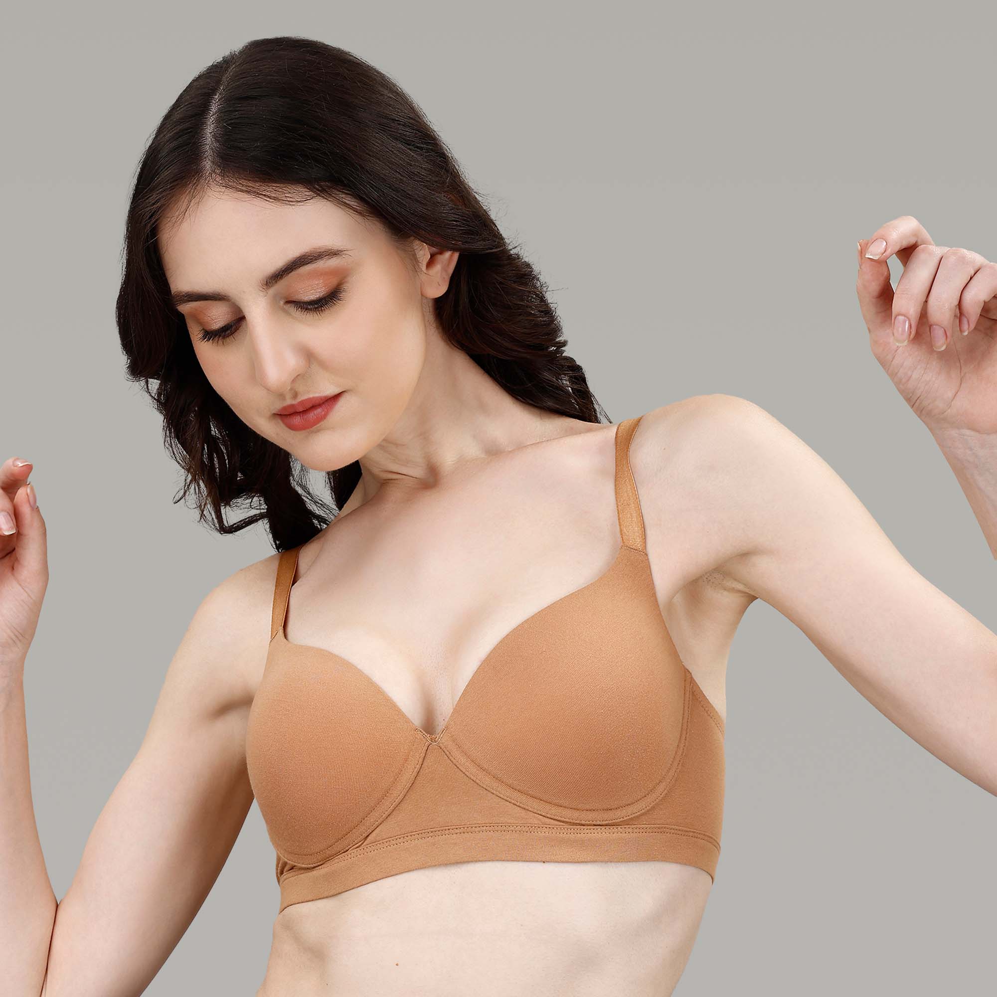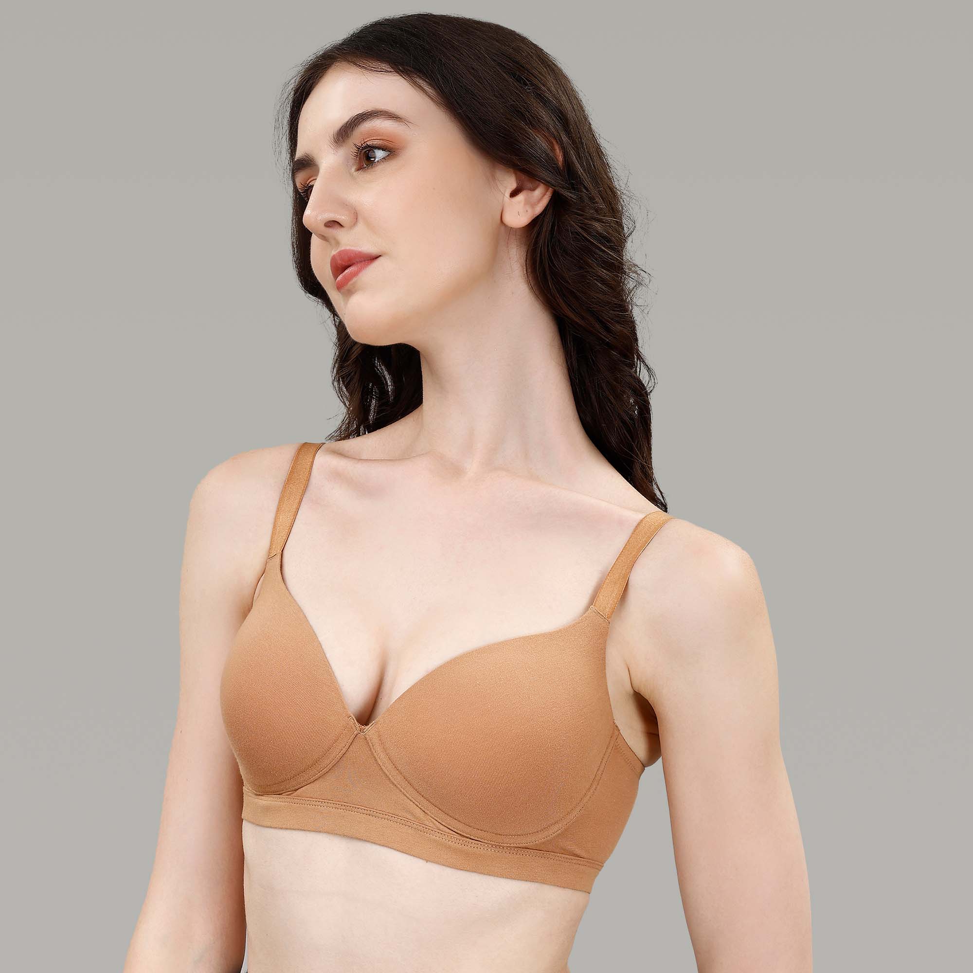 Lightly Padded Non Wired Stretch Cotton Full Coverage T-Shirt Bra with Push-up look