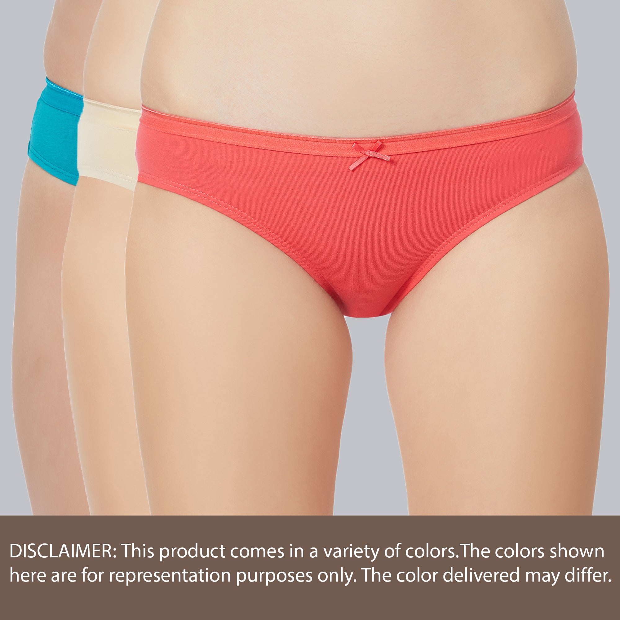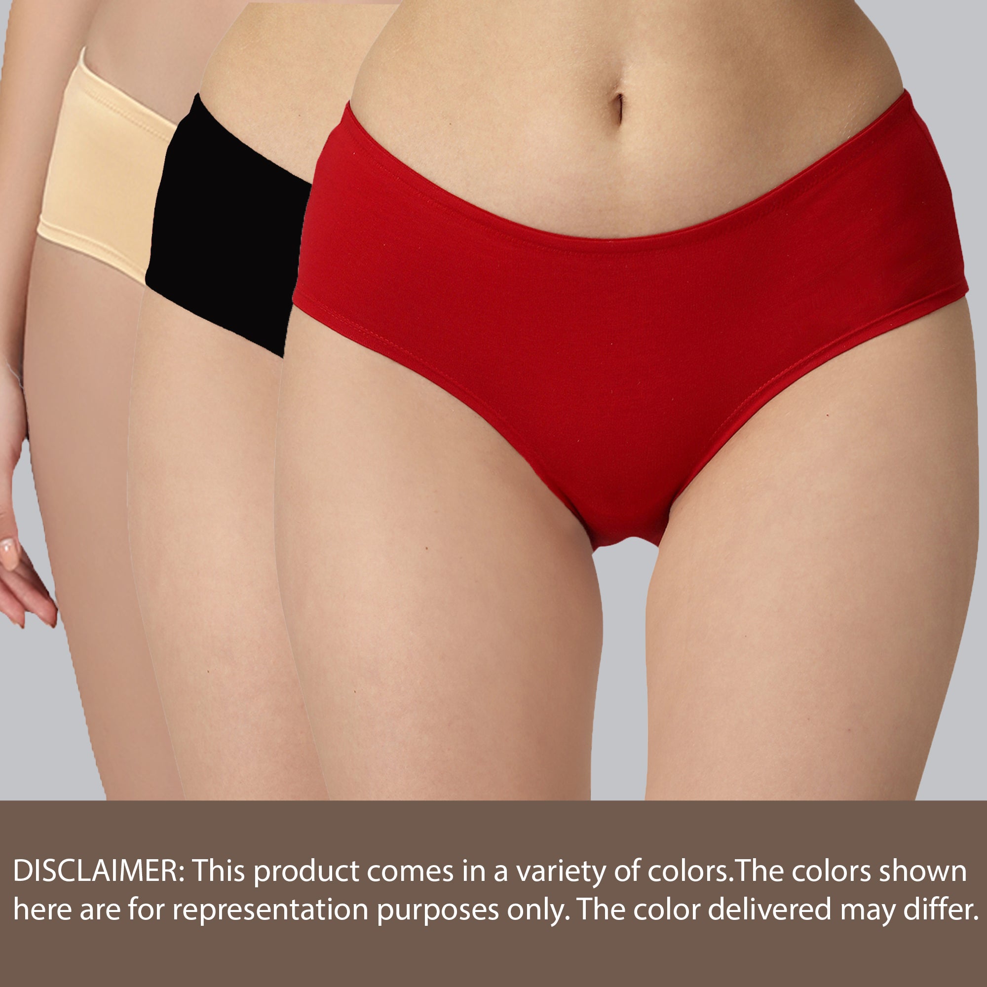 Mid Rise High Coverage Solid Colour Cotton Stretch Brief Panty (Assorted Pack of 3)