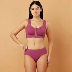 Front Closure Full Coverage Non Padded Non Wired Bra with High Waist Full Coverage Ultra Soft Mesh Panel Brief