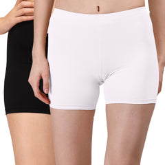 Solid Polyamide Spandex Mid Thigh Length Cycling Shorts (PACK of 2)